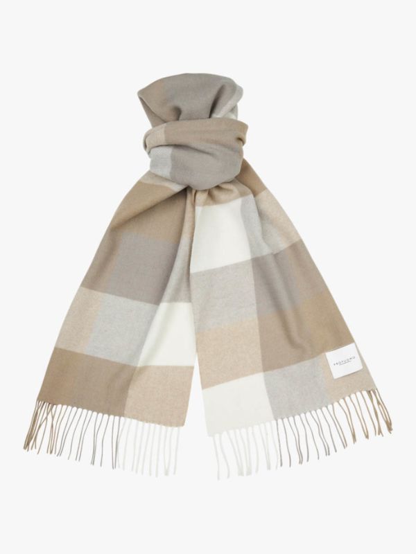 Ruit sjaal van Profuomo, 100% wol. De sjaal heeft een ruit van bruin, grijs en beige. Artikelnummer PPUS30003D van Profuomo. Italiaanse kleuren,