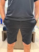 Navy blauwe korte broek gemaakt van 98% katoen en 2% elastan. De korte broek heeft een mooie lengte en valt goed naar de maat. De shorts valt in de 2 voor 100 actie. Mix-and-match actie.