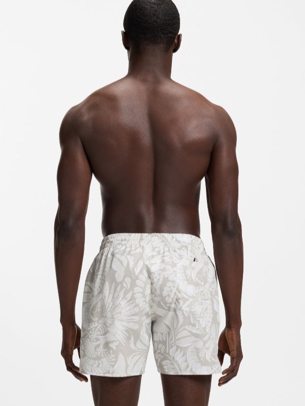 Beige zwembroek van Hugo BOSS. Regular fit pasvorm. Deze zwemshorts van BOSS Menswear van natuurlijk, sneldrogend materiaal is voorzien van een contrasterend merkaccent en contrasterende biezen. Kenmerkend streepdetail aan de achterkant. Dit product bevat ten minste 80% duurzamere grondstoffen. Dit product is deels gemaakt met gerecyclede polyamide.