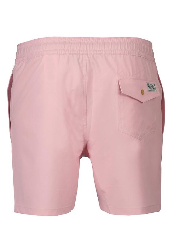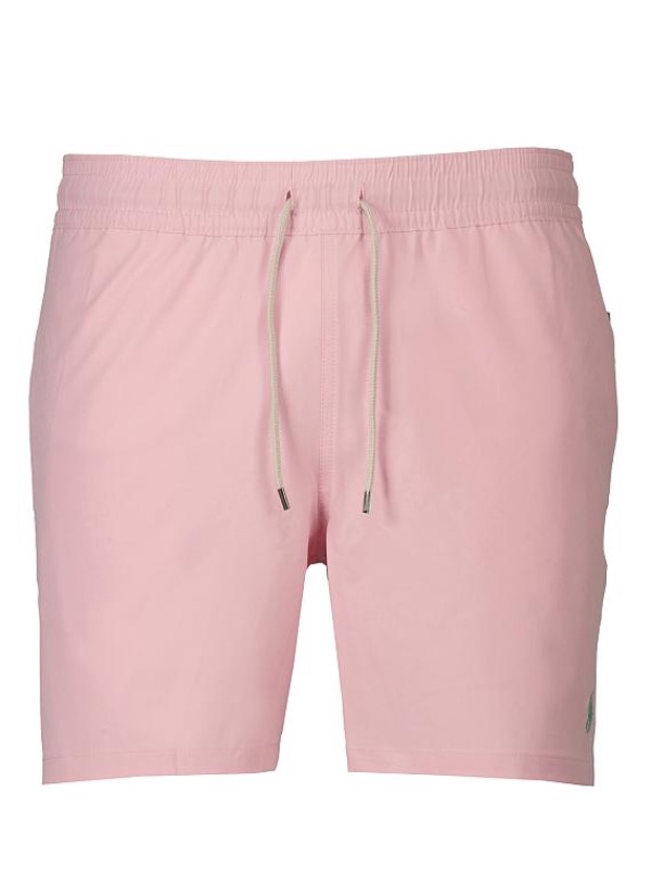 Roze zwembroek van Polo Ralph Lauren, met groene polo player geborduurd op de onderzijde. De zwembroek valt royaal. Beter maat kleiner nemen.