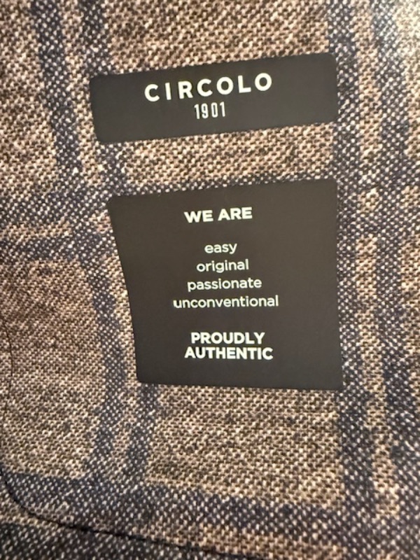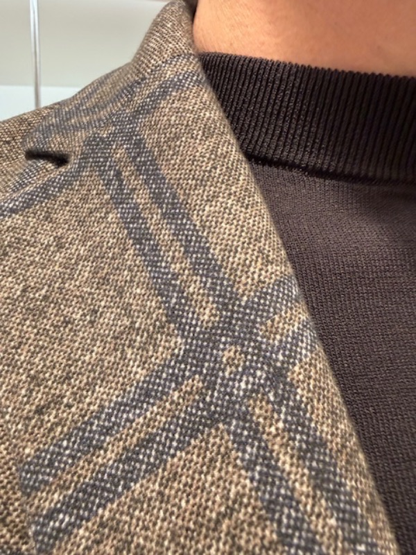 Bruin met blauw stretch colbert van Circolo. Prachtig colbert van katoen, wasmachine wasbaar. Half gevoerd jasje. Italiaanse stof, Italiaans gemaakt.