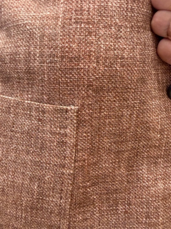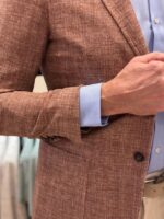 Materiaal van het colbert is 97% katoen en 3% elastaan.