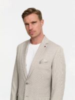 Beige heren colbert met klein werkje van Zuitable, slim fit model. Het jasje heeft fantastische pasvorm. Super comfortabel draagbaar door de stretch. Samen met de bijpassende chino krijg je een modische sneakersuit. Super te combineren met een overhemd, polo of net t-shirt. Top om zowel zakelijk te dragen of naar een feest of huwelijk. Artikelnummer DiNick 241212 van Zuitable.