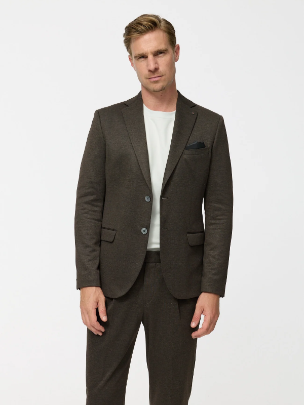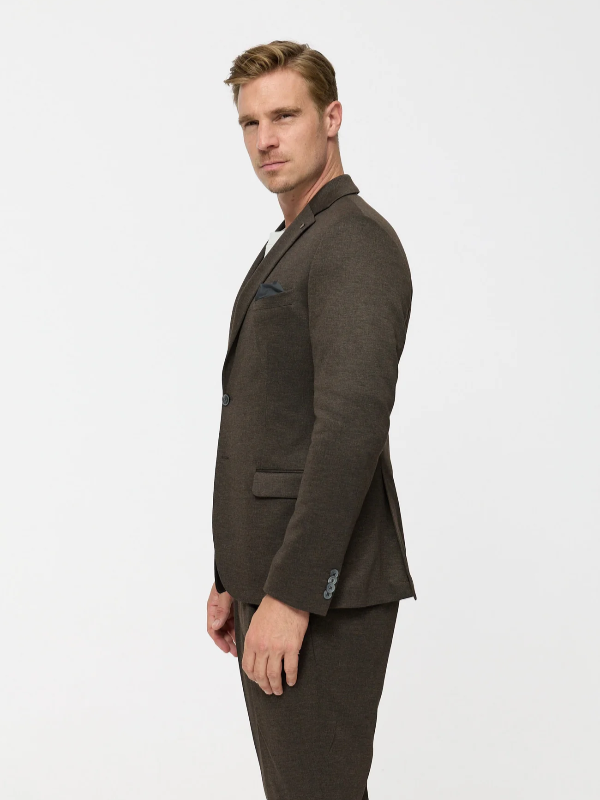 Bruin heren colbert van Zuitable, slim fit model. Het jasje heeft fantastische pasvorm. Super comfortabel draagbaar door de stretch. Samen met de bijpassende chino krijg je een modische sneakersuit. Super te combineren met een overhemd, polo of net t-shirt. Top om zowel zakelijk te dragen of naar een feest of huwelijk. Artikelnummer DiNick 261617 van Zuitable.