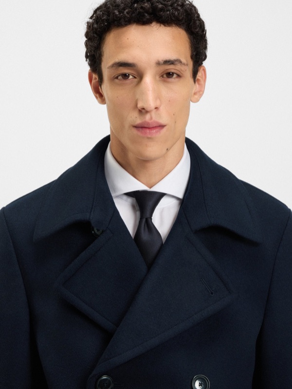 Blauwe winterjas van Hugo Boss, dubbele rij. Prachtige Italiaanse wol cashmere kwaliteit! Artikelnummer 50551081 van Hugo Boss.