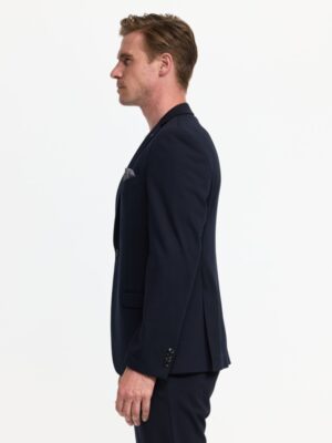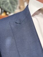 Prachtig helder blauw 2-delig pak van Hugo Boss, slim fit model. Super mooie kwaliteit pak van Boss, Italiaanse virgin wool van Biella. Mooi pak met champagne kleurige knopen.