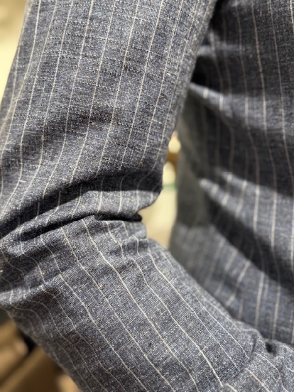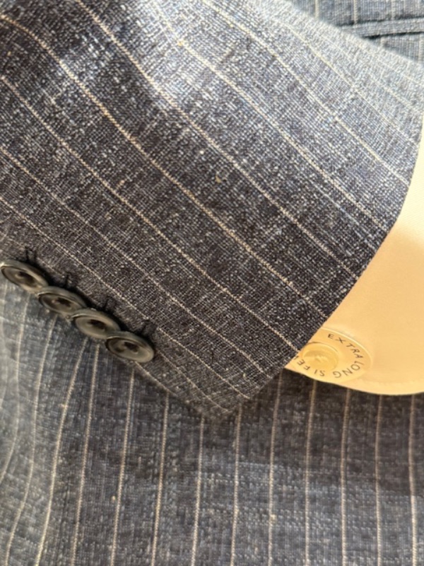 Blauw linnen look streefpak van Roy Robson, slim fit model. Het pak is gemaakt van katoen, wol en linnen. Duits merk, welke wordt geproduceerd in Turkije.