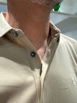 Ontdek de beige Milanio polo van Cavallaro Napoli, een stijlvolle aanvulling op je garderobe voor het voorjaar en de zomer van 2026. Deze polo is vervaardigd uit een viscoseblend met een verfijnd wafelbreisel. De regular fit en korte mouwen zorgen voor een comfortabele pasvorm, terwijl de polokraag en ton-sur-ton knopen een moderne touch geven. De Milanio Polo laat zich moeiteloos combineren met een chino of jeans.