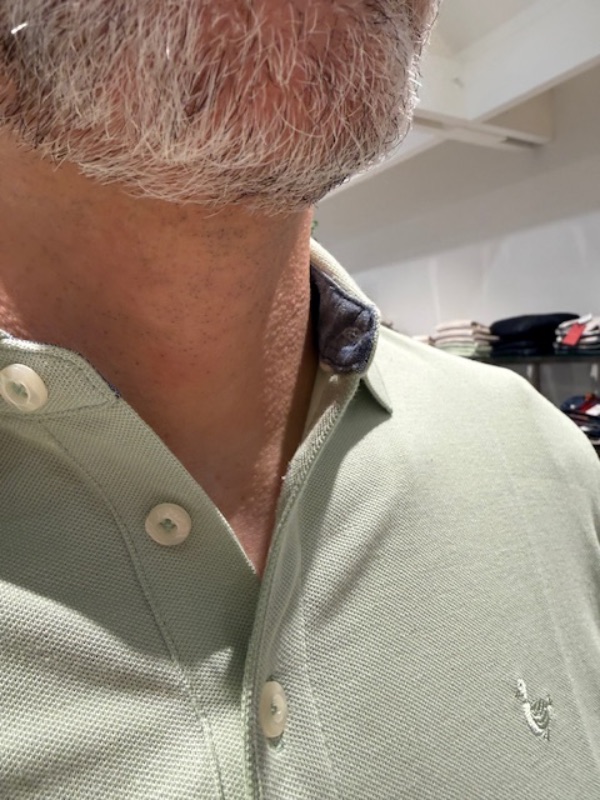 Licht groene polo van Le Canard, slim fit model. De polo is gemaakt van katoen stretch. Heerlijke kwaliteit. Op de borst is de Le Canard eend met ton-sur-ton geborduurd. Leuke verwerking aan de binnenzijde van de kraag.