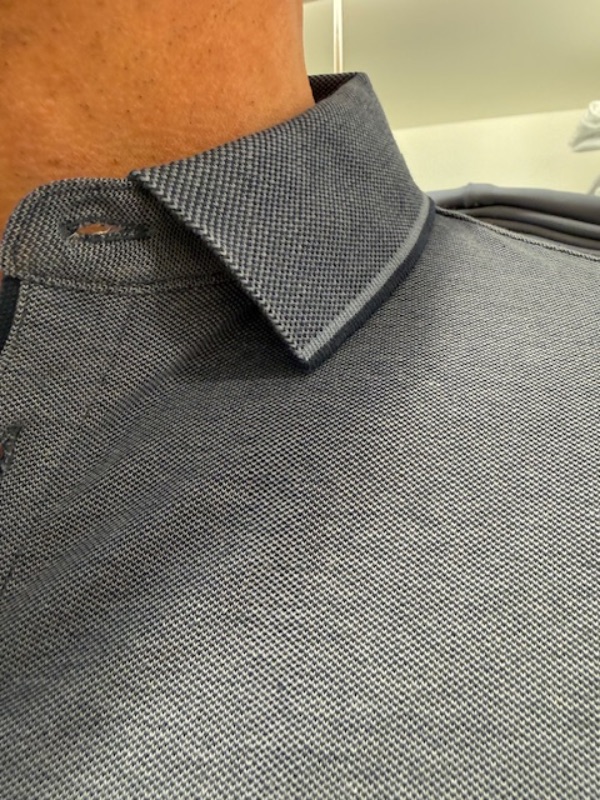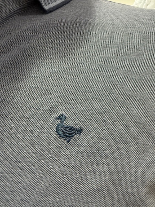 Jeans blauwe polo van Le Canard, slim fit model. De polo is gemaakt van katoen stretch. Heerlijke kwaliteit. Op de borst is de Le Canard eend met ton-sur-ton geborduurd. Leuke verwerking aan de binnenzijde van de kraag.