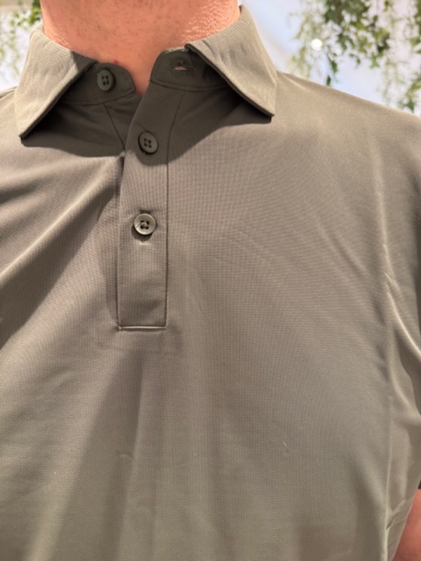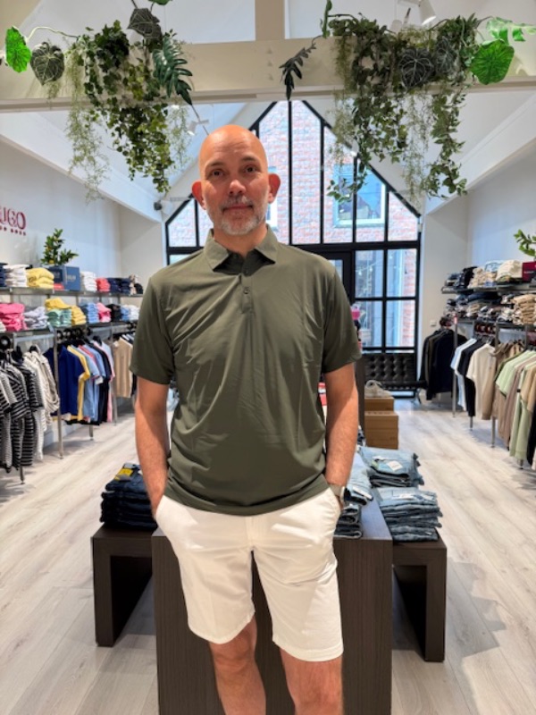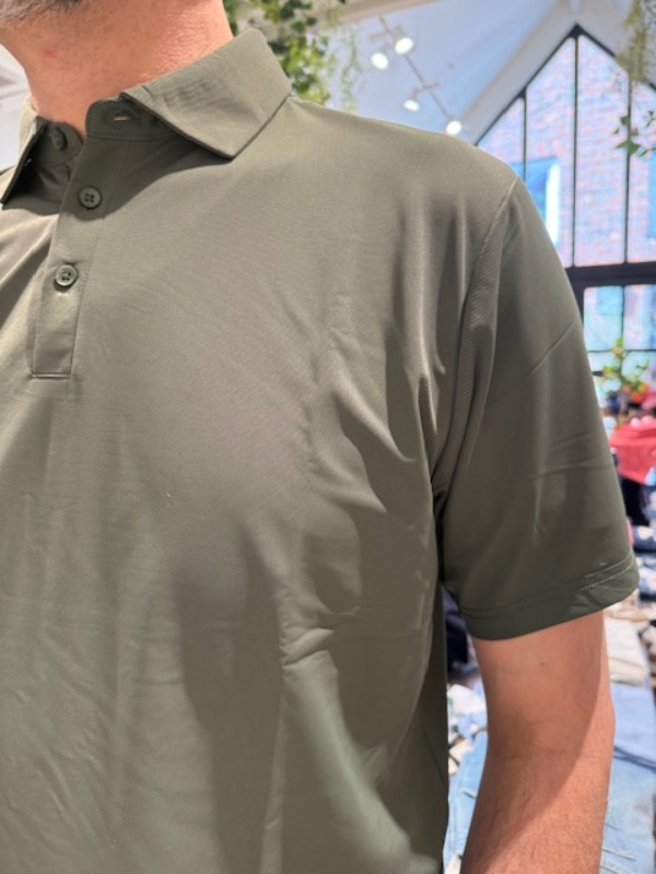 Groene stretch polo van Le Canard, 88% polyamide en 14% elastan. Mix-and-match artikel. 2 Stuks voor 100 euro.