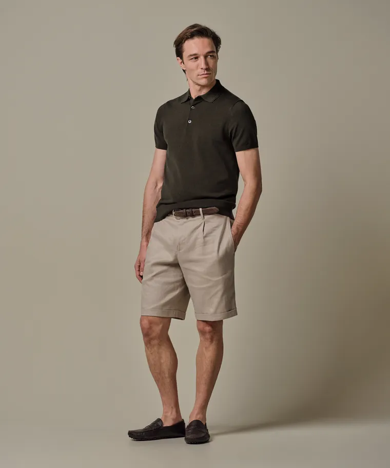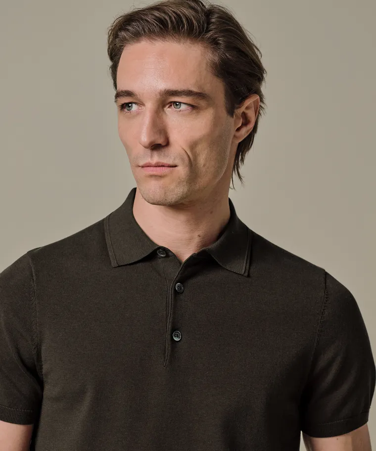 Bruine slim fit polo van Profuomo. Gemaakt van een mix van tencel, katoen en zijde. Tencel is duurzaam, licht en comfortabel. Zijde geeft een luxueuze look en feel. De polo heeft echte parelmoeren knopen. Ascolite technologie voor gegarandeerd vastzittende knopen.