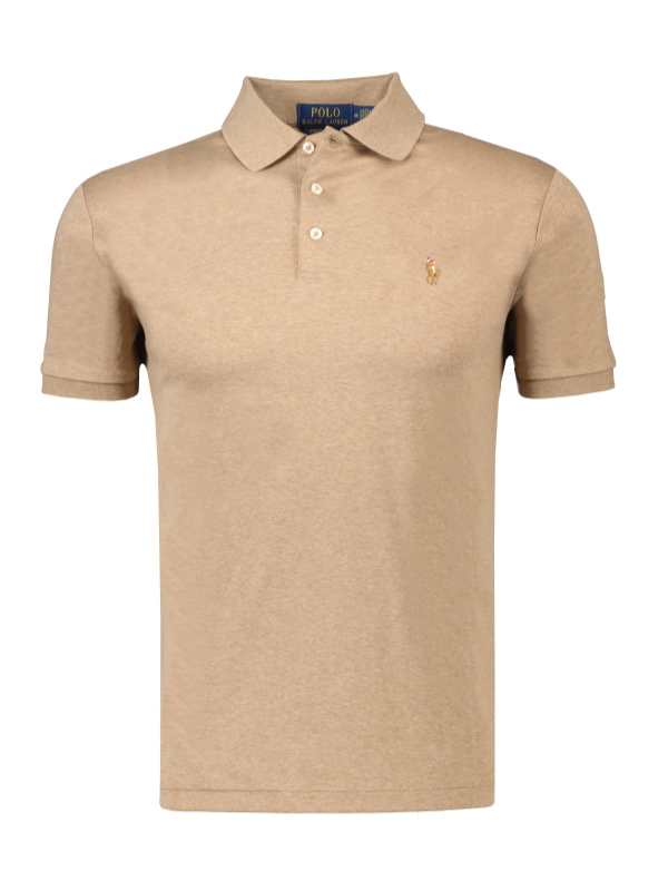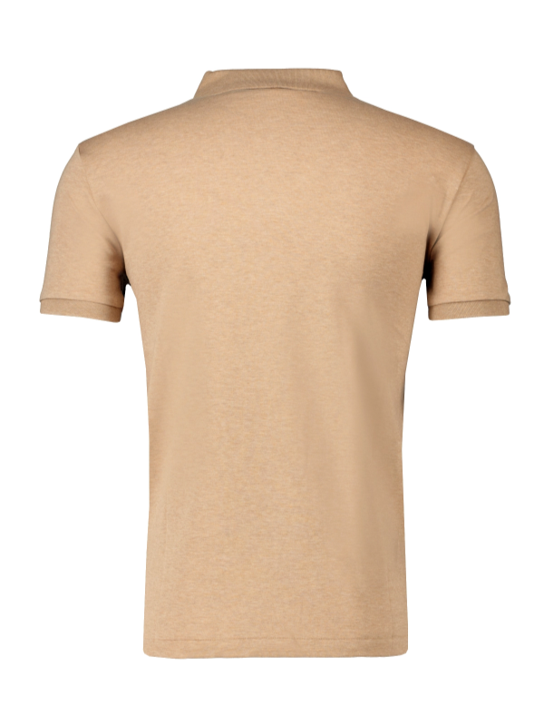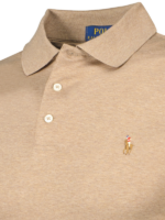 Licht bruine gêmeleerde polo van Polo Ralph Lauren, custom fit pasvorm. Deze polo is gemaakt van 100% katoen. Draagt als een t-shirt. Heerlijke soepele stretch kwaliteit. De polo heeft een gekleurde polo player op de borst geborduurd.