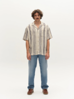 Overshirt van Gabba. Super leuk overshirt, waar we een bijpassende korte broek bij hebben. Het overshirt is off-white met een blauwe streep. Festival klaar. Regular fit.