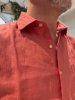 Oud roze linnen korte mouw overhemd van Le Canard. Het shirt heeft een borstzak en heeft een slanke iets kortere lengte. Leuk om ook over de broek te dragen. Shirt valt onder de 2 voor 150 special. Mix-and-match mogelijk.