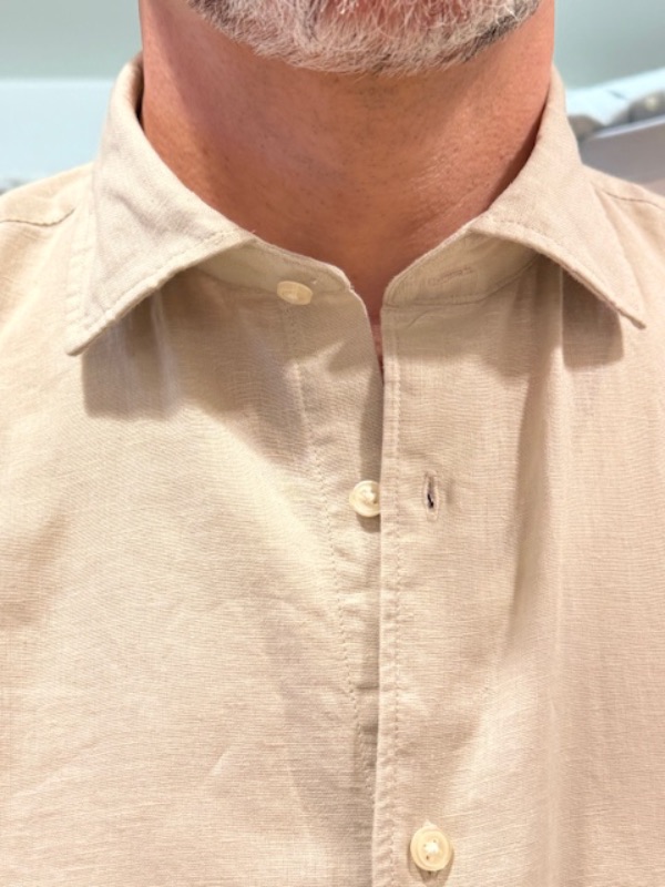 Licht beige linnen katoen overhemd van Le Canard, slank model. Mooie lengte om ook over de broek te dragen. De stoffen komen uit Italië. Het shirt is leuk op een chino, maar ook leuk op een korte broek. In diverse kleuren verkrijgbaar. Gemaakt van 55% linnen en 45% katoen.