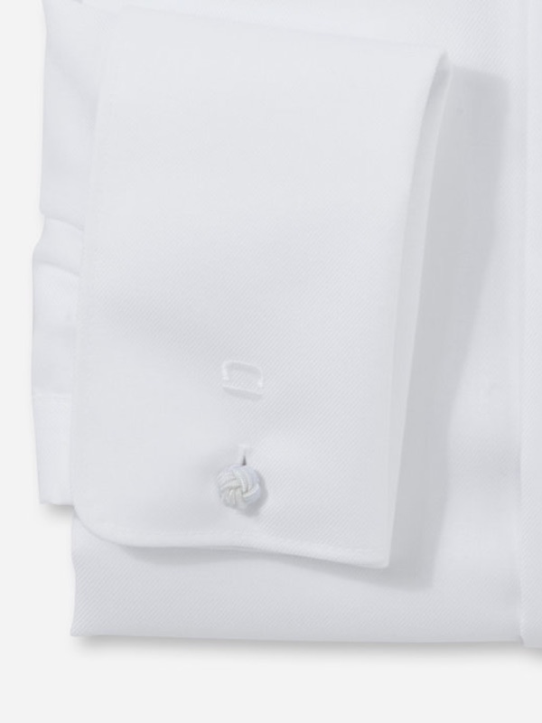Wit smoking overhemd van Olymp, modern fit pasvorm. Regular fit. Het shirt heeft een blinde sluiting en een dubbele manchette. Strijkvrij en is gemaakt van 100% katoen.