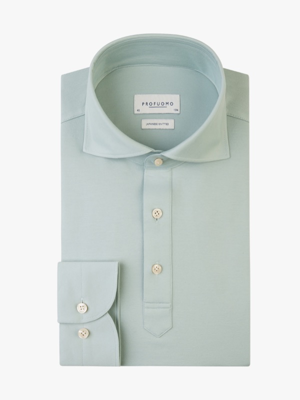 Groene polo met lange mouw van Profuomo, slim fit model. De polo is gemaakt van Japanese Knit, zelfde kwaliteit als de overhemden. 100% katoen en strijkvrij.