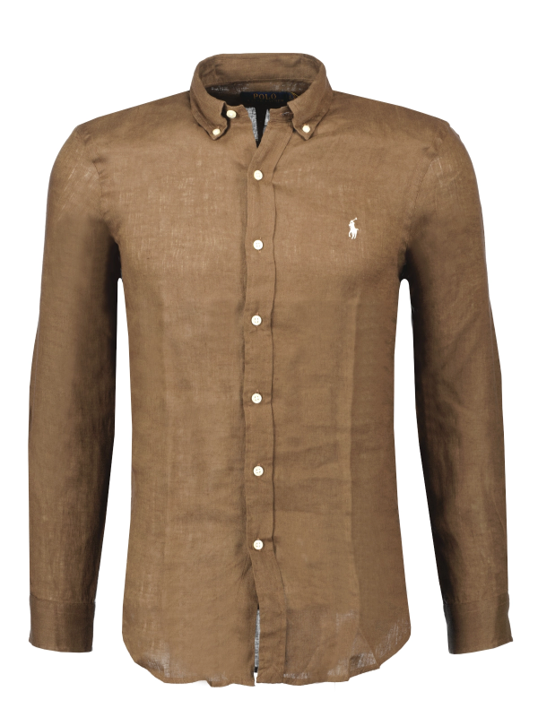 Licht bruin linnen overhemd van Polo Ralph Lauren, slim fit model.