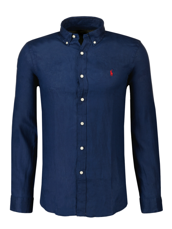 Navy blauw linnen overhemd van Polo Ralph Lauren, slim fit model.