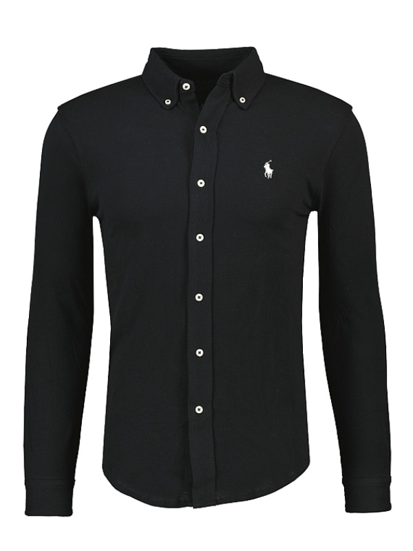 Zwart stretch overhemd van Polo Ralph Lauren, slim fit model. Gemaakt van 100% katoen. Er staat een witte polo player op de borst.