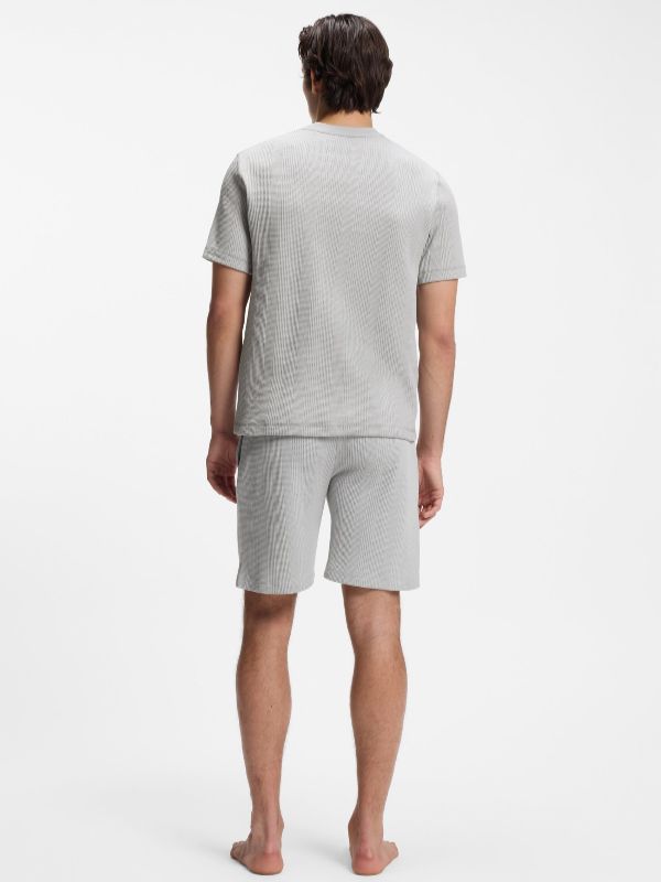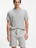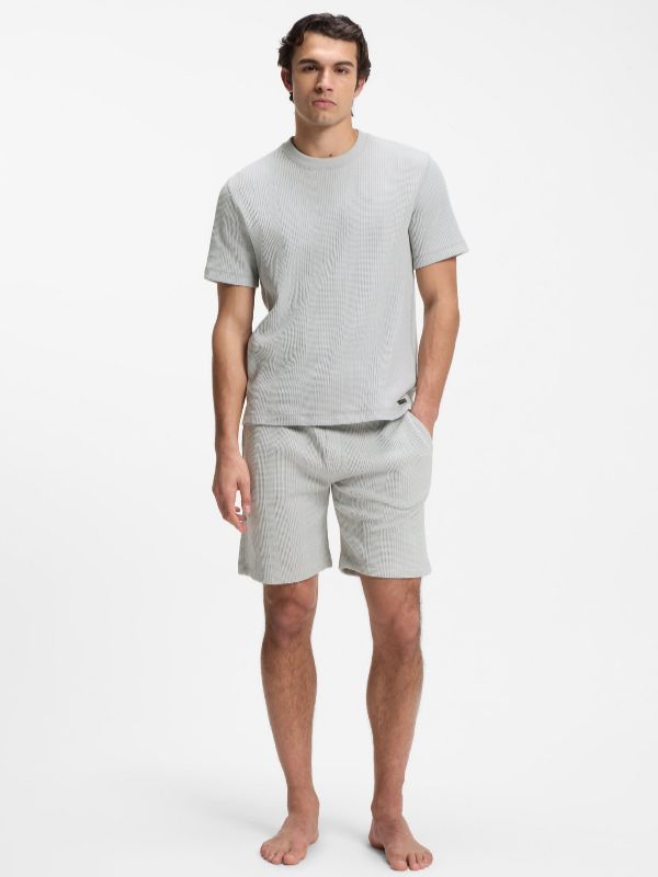 Licht blauw t-shirt van Hugo Boss. Dit T-shirt van BOSS Menswear van een comfortabele katoenmix heeft een onderscheidende wafelstructuur. Afgewerkt met logoplaatje. Ontspannen regular-fit model. Er is ook een bijpassende korte broek bij verkrijgbaar.