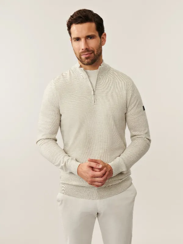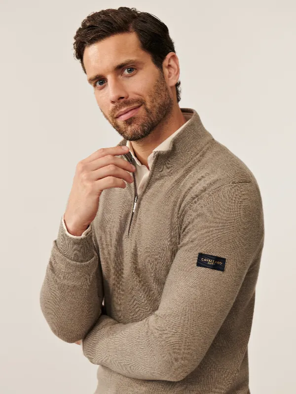 Zand kleurige merino trui van Cavallaro met ritsje. Ervaar het ultieme draagcomfort met de Merino half zip trui voor heren van Cavallaro. Deze best verkochte fall-winter trui is gemaakt van 100% Italiaanse Merino wol, wat zorgt voor een ongeëvenaarde zachtheid en warmte. De regular fit biedt een tijdloze uitstraling en is perfect voor elke gelegenheid. De stijlvolle zwarte kleur en de subtiele Cavallaro badge op de mouw maken deze trui een veelzijdige toevoeging aan je garderobe. Ideaal voor zowel casual als formele settings, deze trui houdt je comfortabel en stijlvol tijdens de koudere maanden. Artikelnummer 118255000 van Cavallaro Napoli.
