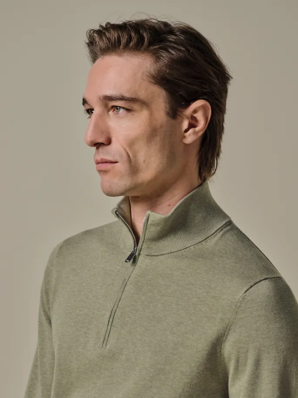 Deze luxury basic half zip is goed geschikt om een meer gelaagde look te creëren deze winter. De kwaliteit is een mix van tencel, katoen en zijde. Tencel is duurzaam, licht en comfortabel. De zijde geeft de trui een luxueuze look & feel en is daarvoor perfect voor elke look.