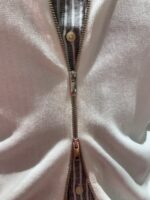 Dit vest heeft rib gebreide boorden en een volledige rits die zowel boven als onder open gemaakt kan worden. De kraag is opstaand en wat hoger.